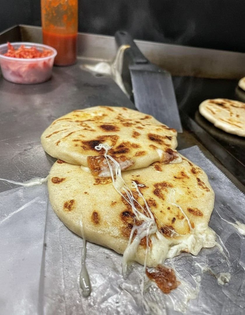 Warm, thick corn cakes stuffed with melty cheese or savory fillings — crispy outside, soft inside.