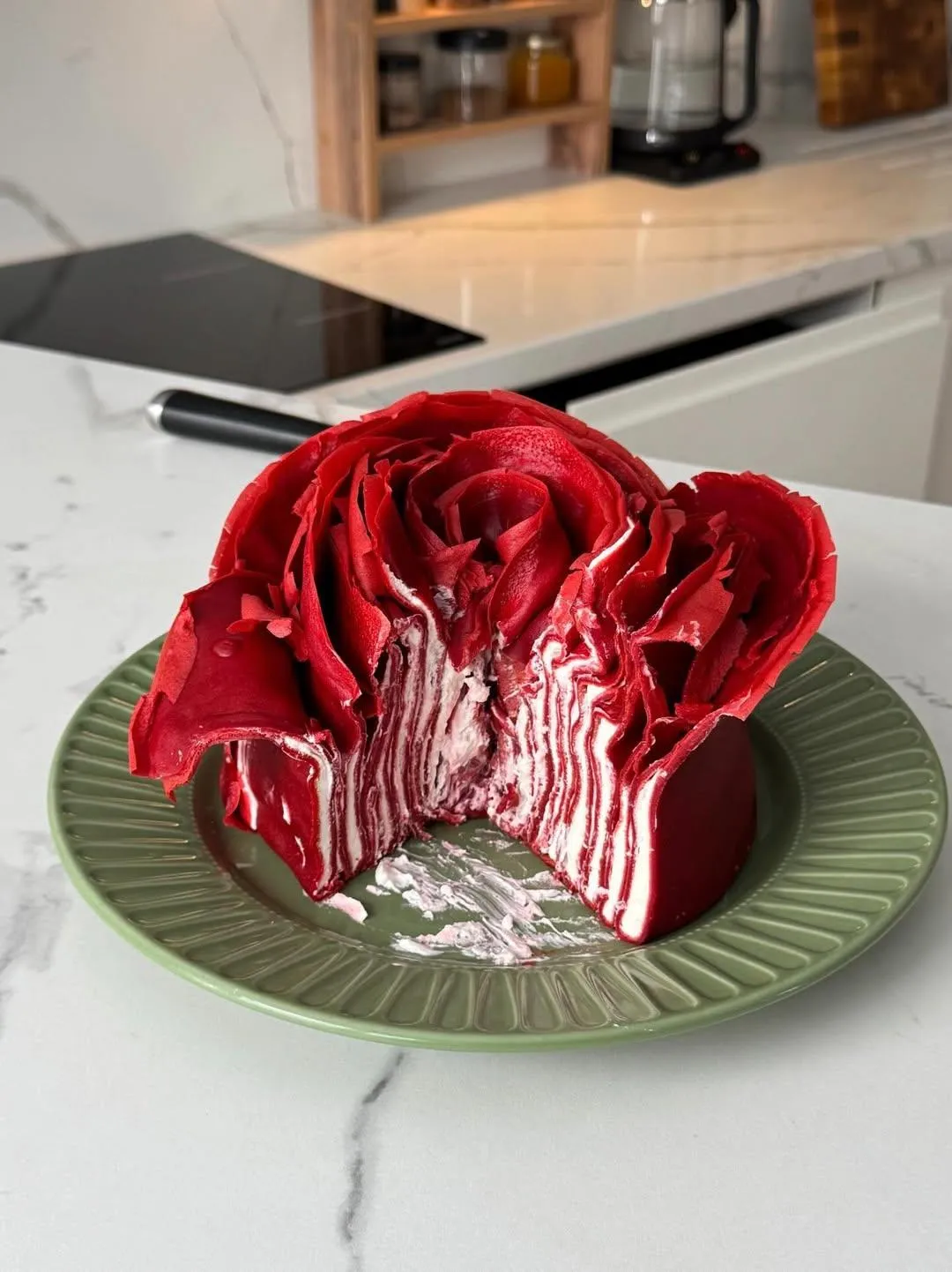 Questa è una torta scenografica fatta di tante crêpes sottili, farcite con crema e modellate a rosa. Bellissima da vedere e delicata da mangiare. 🧾 Ingredienti (per 1 torta media) 👉 Crêpes 👉 Crema al mascarpone 👩🍳 Preparazione passo dopo passo