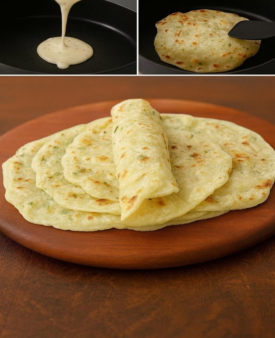 Soft, fragrant, and perfectly golden – this flatbread is irresistible! 🕒 Prep Time 10 minutes 🍳 Cook Time 10–12 minutes 🍞 Servings 4 flatbreads 🧾 Ingredients For the Flatbread Dough For the Garlic Butter 👩🍳 Step-by-Step Instructions