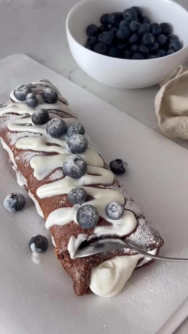 Шоколадний рулет з чорницею та білим кремом